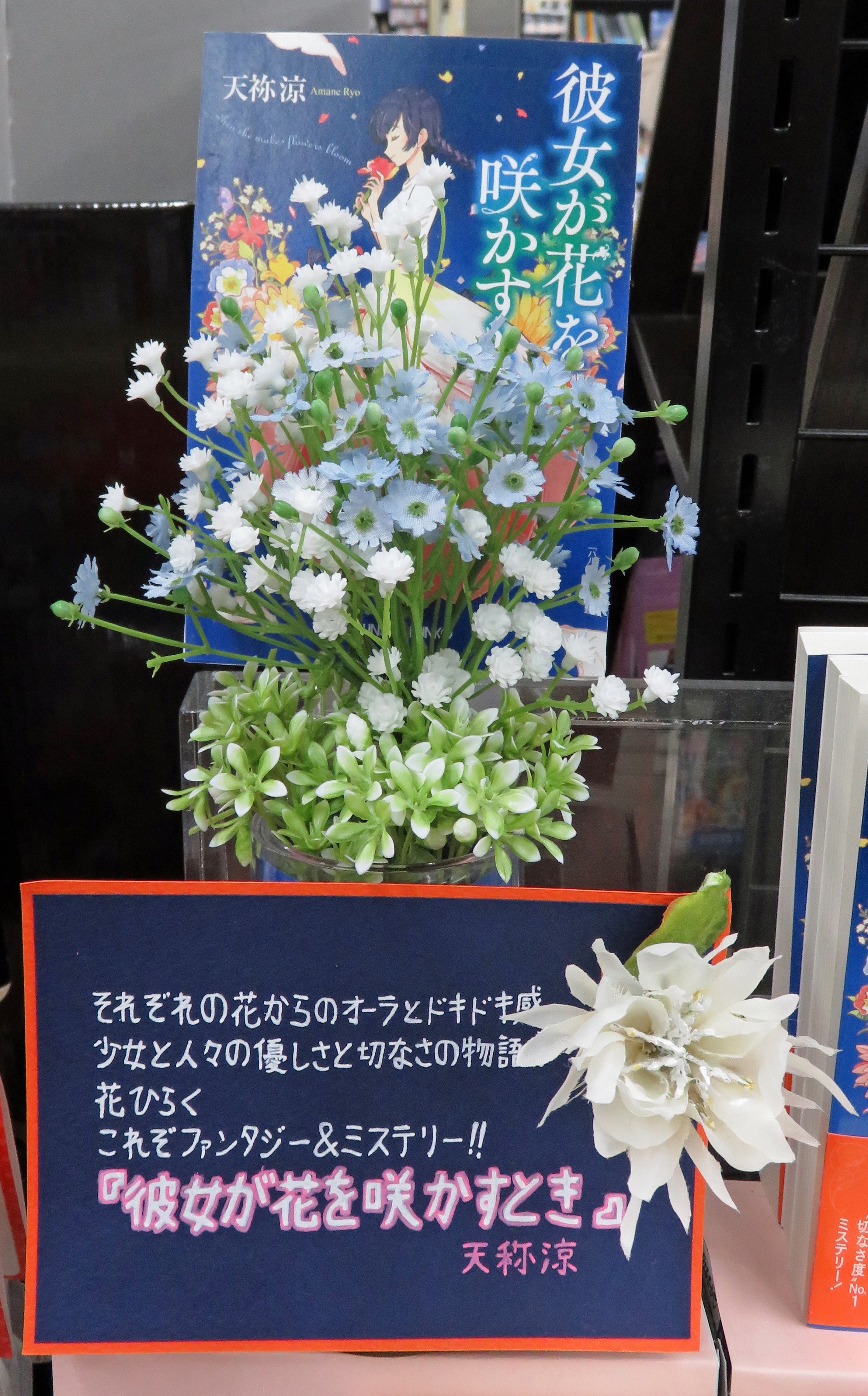 何度か書いていますが、『彼女が花を咲かすとき』はいろいろな思い出がある小説なので、こうしてお花で飾って展開いただけるのは大変うれしい。