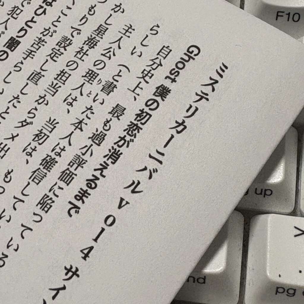 ミステリカーニバル vol.4のサイン対象本の裏話を書いた文庫サイズ4ページの冊子です。初公開の裏話や、セールスのぶっちゃけ話なども掲載。ミステリカーニバル vol.4につくったので再配布の予定はありません。今回を逃すと二度と入手できないので、ほしい人はこの機会をお見逃しなく!