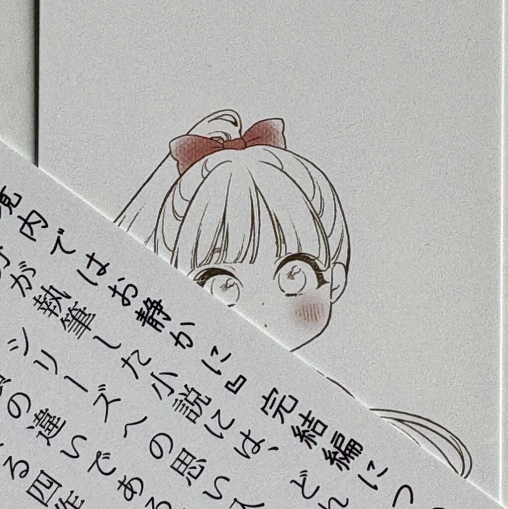 栞の裏面には、『境内ではお静かに』完結編に関するちょっとしたお知らせも掲載しております。